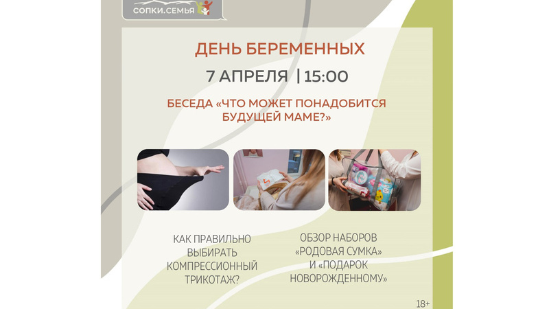 Ждём вас 7 апреля на «Дне беременных» в СОПКАХ.СЕМЬЯ, где вы сможете не только получить важную и полезную информацию, но и пообщаться с единомышленниками.