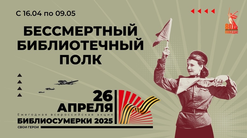 *Делитесь фотографиями, воспоминаниями и рассказами о героях прошлого и настоящего своей семьи, используйте хэштеги #Бессмертныйбиблиотечныйполк #80словпобеды #библионочь2025 #БиблиотекаНаБуркова30