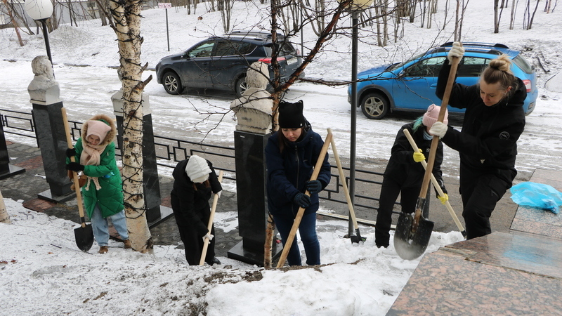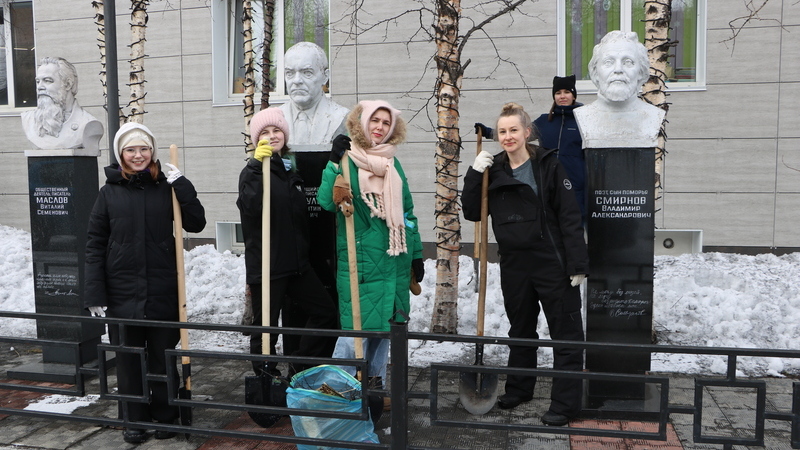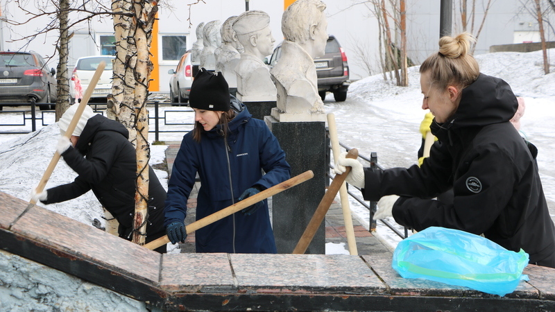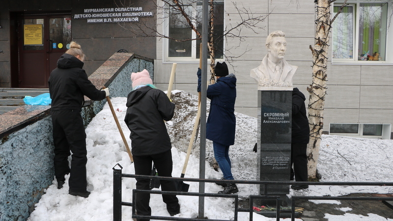 19 апреля сотрудники и волонтеры библиотеки собрались перед зданием библиотеки. Целью культурного субботника явились работы по благоустройству Аллеи писателей – уникального места не только в Мурманске, но и в России. Перед началом работ для участников была проведена экскурсия. Собравшиеся узнали о литераторах, чьи бюсты установлены на аллее, послушали стихи, написанные поэтами, чье творчество неразрывно связано с историей Заполярья. Затем волонтеры убрали опавшие ветки, взрыхлили снег, протерли памятники. В дружной компании работу выполняли с настроением и энтузиазмом. По окончании субботника всех гостей ждал горячий чай и угощение. Благодарим волонтеров, принявших участие в акции за неравнодушие и желание сохранить и популяризировать культурное наследие родного города.
