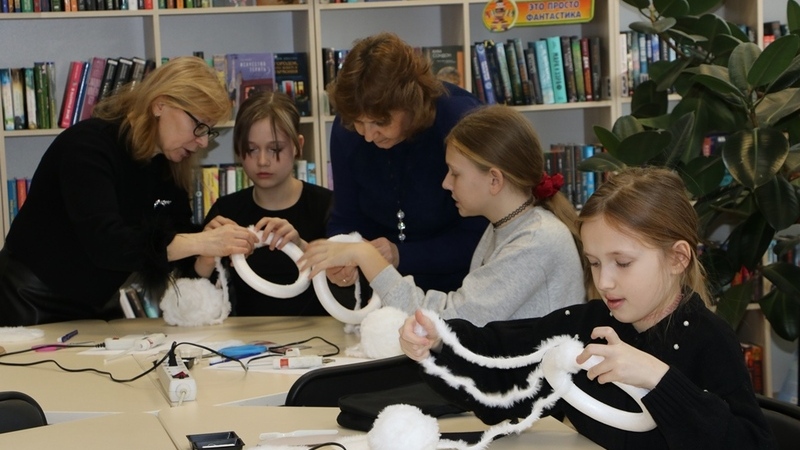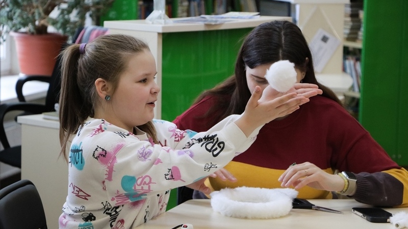 Проявив свою фантазию, участники мастер-класса сделали своими руками пасхальный венок в виде забавного зайчика.
