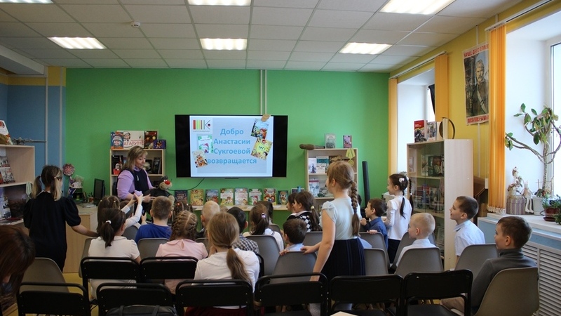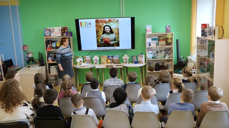 На встречах с читателями беседовали о том, что Россия очень большая и в ней живут разные народы, говорящие как на русском, так и на своих национальных языках. Речь шла и о том, что как раз в одной из республик нашей страны, живет и творит поэт и писатель Анастасия Сукгоева. Дети познакомились с жизнью и творчеством писательницы, с её первыми стихами. Ребята узнали о том, для кого она сочиняет сказки. С большим интересом участники послушали чтение поэтических произведений в исполнении автора в видеозаписи, как на русском, так и на родном для Анастасии языке, посмотрели короткие мультфильмы, которые сделали своими силами с помощью рисунков и поделок из пластилина их ровесники. Школьники были очень внимательны, когда библиотекари читали отрывки из книг «Созвездие большой Бубуки», «Витя и домовенок», «Добро возвращается», «Пас – музейный кот».