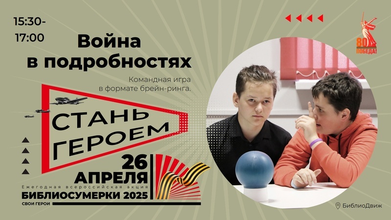 Мероприятие пройдёт в формате брейн-ринга, где участникам предстоит использовать не только свои знания, но и проявить находчивость и смекалку. Военные видеохроники, предметы солдатского быта, звуки войны и многое другое помогут читателям окунуться в атмосферу военных лет и вспомнить нужные для ответов факты. Игроки вспомнят редкие военные профессии, ответят на видеовопросы, проверят себя в раунде «Правда или ложь».
