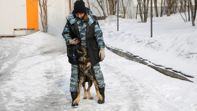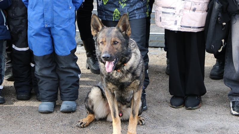 На прощание участники сфотографировались со служебным псом на память об интересной встрече.