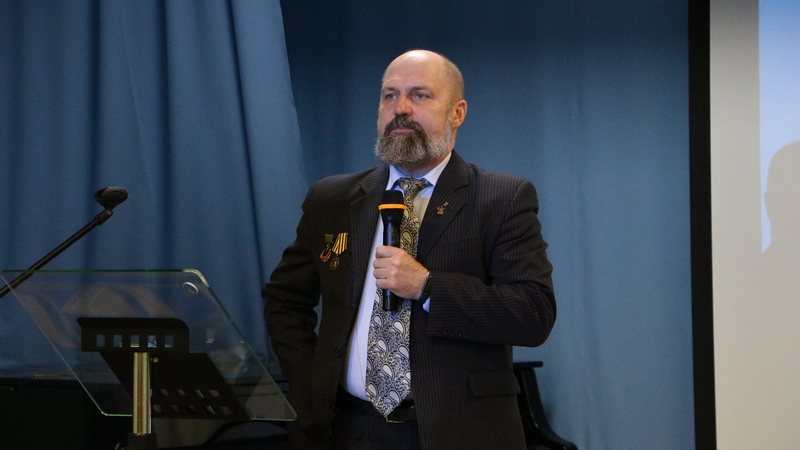 Александр Владимирович Чемерский, подполковник в отставке, председатель Совета ветеранов УФСБ по Мурманской области, поделился историческими фактами из архивных документов времён Великой Отечественной войны. Рассказ вызвал глубокий эмоциональный отклик у слушателей. Александр Владимирович прочитал стихи собственного сочинения и призвал школьников хорошо учиться, любить свой край и Родину.