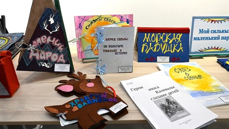 На конференции была представлена выставка книг из фонда Музея детской рукописной книги в номинации «Мой сильный и маленький народ». Участники могли познакомиться с ними, рассмотреть и убедиться в том, что изучение коренного народа нашей области у детей вызывает особенный интерес. Участвуя в конкурсе рукописной книги, ребята под руководством своих воспитателей или родителей обобщают полученные знания и создают собственные книжные произведения о саамах. Чаще всего это сказки, где действуют традиционные герои: Медведь Тала, Чахкли, смелые богатыри, оленеводы и другие. В фонде музея есть книги, авторами которых являются представители саамских семей. В своих произведениях ребята рассказывают реальные истории, а не сказочные: о жизни своих бабушек, дедушек и других родственников.