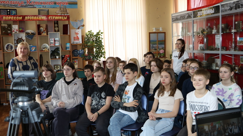 Тема встречи «Этих дней не смолкнет слава» была посвящена 80-летию Победы в Великой Отечественной войне. Участниками телемоста стали обучающиеся 6 «А» класса Мурманского политехнического лицея и ученики 8 класса Мошканской средней школы, Сенненского района Витебской области Республики Беларусь.