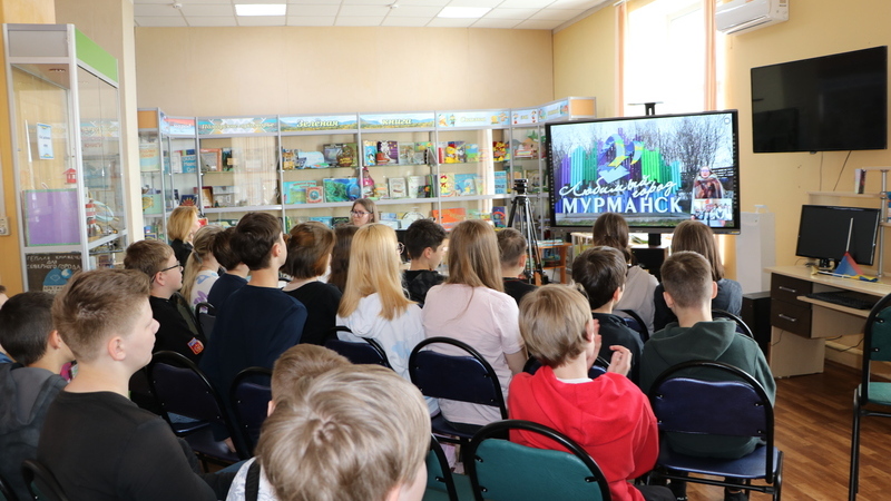 В начале встречи ребятам был представлен видеоролик, созданный сотрудниками и волонтерами библиотеки. Ребята совершили видеопрогулку по Мурманску и получили информацию о знаковых местах и памятниках, связанных с воинской славой города-героя. Школьники услышали рассказ о мемориале «Защитникам Советского Заполярья в годы Великой Отечественной войны», памятниках мужеству и стойкости мурманчан («Печная труба») и воинам шестой героической комсомольской батареи. Современные съемки чередовались с архивными кадрами военной хроники, демонстрирующими подвиг солдат и жителей Мурманска. Затем сотрудник библиотеки продемонстрировала гостям встречи презентацию, с помощью которой ребята совершили виртуальную экскурсию в комплекс «Долина Славы» – один из главных воинских мемориалов Мурманской области. Также участники телемоста услышали рассказ о необычном памятнике, увековечившем подвиг бойцов оленно-транспортных батальонов.