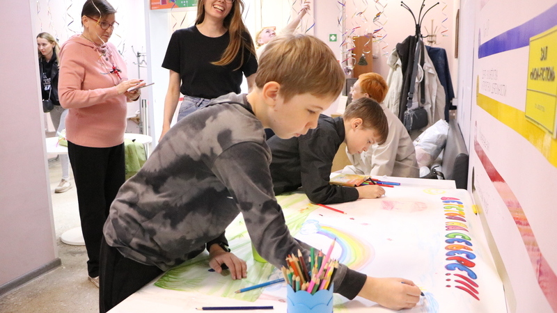 Создание коллективной работы "Детство на Севере" завершило праздничную программу.
