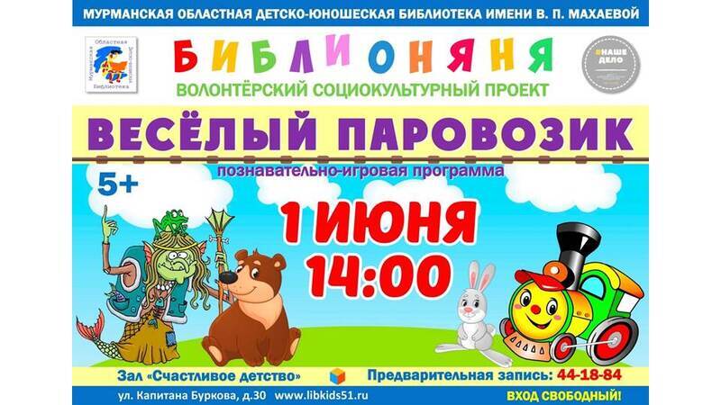 Вас ждет познавательно-игровая программа с участием любимых героев. Гости встречи отправятся в увлекательное путешествие на веселом паровозике. Во время остановок ребята встретятся с обитателями леса – Медведем и Кикиморой Болотной. Танцы, игры и забавы закружат участников праздника в веселом хороводе. Детям предстоит выдержать испытания, подготовленные коварной жительницей леса, ответить на вопросы литературных загадок, а в конце всех ждет угощение и фото на память.