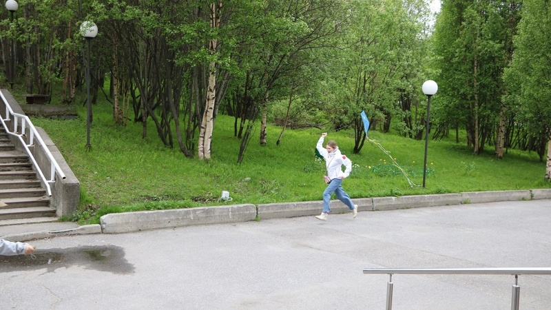 Изучив конструкцию змея и приговаривая волшебные слова Квака и Жаба из книги Арнольда Лобела «Воздушный змей», все участники встречи приступили к изготовлению воздушных поделок и испытанию их в действии. Летная погода была благоприятной для удачного запуска. С заклинанием из сказки «Лети, ЗМЕЙ, Лети» самодельные летательные змеи поднялись в небо прямо на площадке у библиотеки. Запуск воздушных змеев удался!