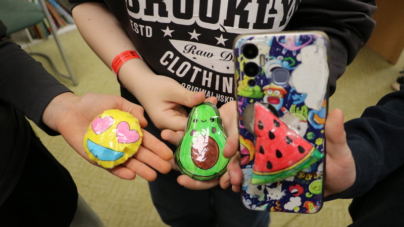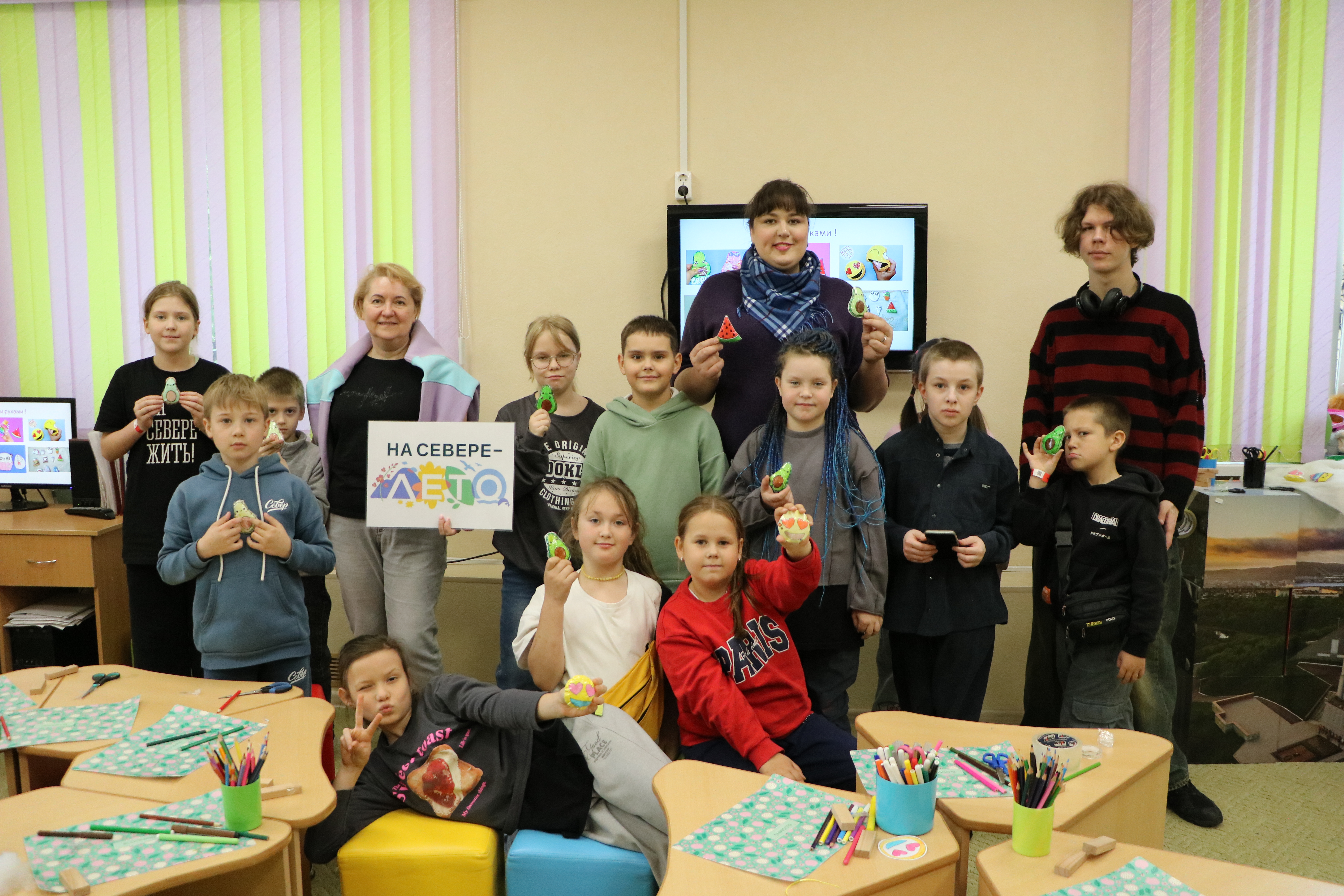 Сотрудники библиотеки создали для мальчишек и девчонок игривое настроение. Ребята мастерили своими руками современные игрушки-антистресс, которые сейчас так популярны среди детворы. Бумажные сквиши в форме авокадо, дольки арбуза и смайлика получились яркими и интересными. Своим поделкам создатели сразу нашли применение – их также можно использовать в качестве подставки под телефон.