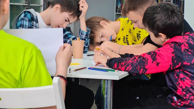 Сегодня ребята из оздоровительного лагеря школы №34 посетили молодежный центр «БиблиоДвиж», где проявили все свои креативные способности. Талантливые юные участники объединили свои усилия в комикс-игре «4 кадра». Фантазируя, дети решили запечатлеть незабываемые моменты летнего настроения в ярких рисунках в виде увлекательных сюжетов.