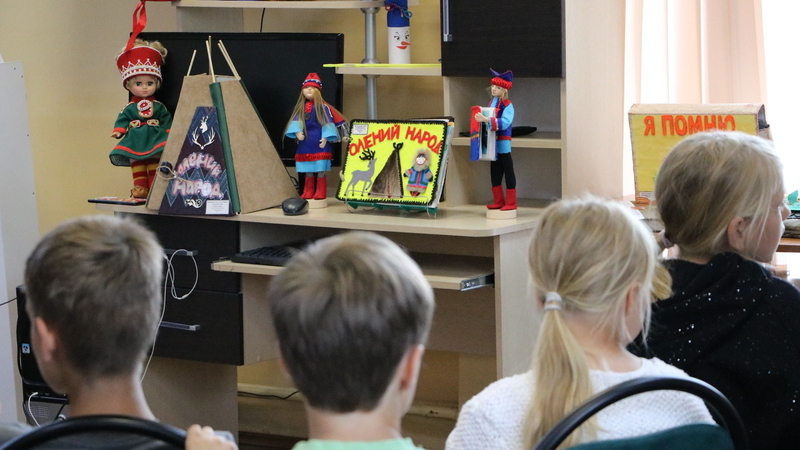 Школьники из летнего лагеря школы №34 вместе с библиотекарем вспоминали о коренном народе Кольского Севера – саами: где они живут, чем занимаются, какую традиционную одежду носят. Саамские сказки для ребят всегда интересны – необычные герои и сюжеты историй привлекают внимание. На встрече дети узнали легенду об олене Мяндаше, познакомились со сказочным медведем Талла и богатырем Ляйне. Мальчишки и девчонки с удовольствием прослушали сказку на саамском языке, посмотрели мультфильм по сказке «Богатый да скупой – бедный да щедрый», а также рассмотрели рукописные книги на саамскую тематику и видеосюжет об одной из таких книг с чтением истории «Сказ о таинственном озере».