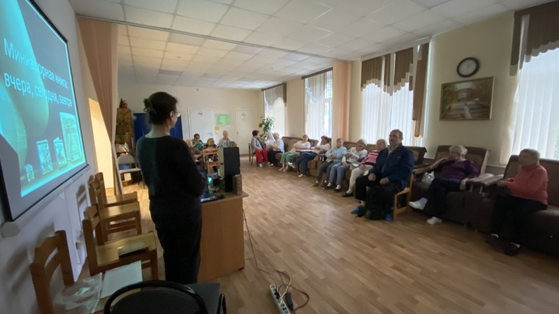 Сегодня состоялась ставшая уже традиционной встреча руководителя Музея С.А. Есенина Марины Геннадьевны Габриелян с посетителями Социально – реабилитационного отделения для пожилых граждан и инвалидов г. Мурманска. Посетители центра познакомились с определениями миниатюрной книги, манускрипта, фолианта, инкунабулы, узнали об истории появления миниатюрных изданий в истории человечества.