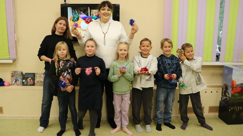 Кто бы мог подумать, что из акриловых ниток, синельной проволоки, пуговок и бумаги могут получиться такие чудесные игрушки! Да и использовать их можно по-разному: и как браслет, и как весёлый сувенир на рабочий стол, и как товарища по играм. Ребята проявили фантазию: количество глаз, носов, выражение лиц, характер и настроение, всё это индивидуально у каждого пушистика! Родители и бабушки активно участвовали, успевая не только помочь детям, но и сделать свою оригинальную вещицу.