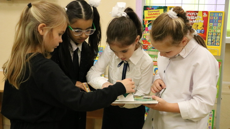Школьники наперебой угадывали отправителей телеграмм из сказок, в командной эстафете на скорость собирали слово «Школа» и находили ответы на самые каверзные вопросы в необычных познавательных книгах.