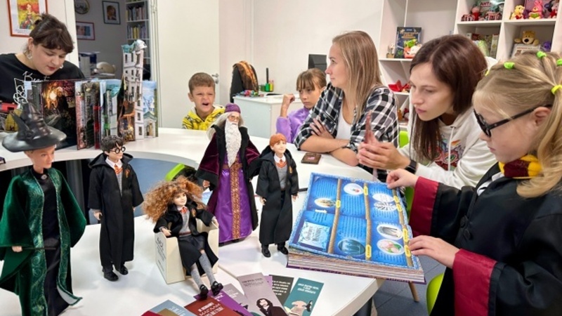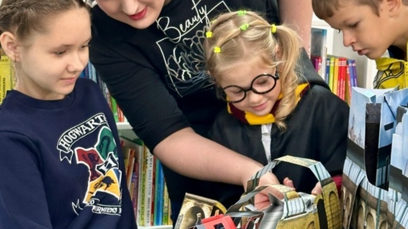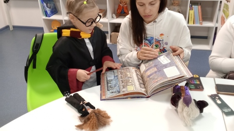 В выходной день юные читатели отправились в путешествие по увлекательному миру книг о Гарри Поттере. Для этого ребятам предстояло пройти интересные испытания, почти такие же, как у «золотого трио» из героического фэнтези. В начале дети познакомились друг с другом по-английски, вспомнили названия некоторых реалий из волшебного мира, послушали и перевели отрывки из книг о Гарри Поттере. В игре «Кто я?» участникам нужно было рассказать об одном из главных героев, не называя его имени. Задача не из простых, ведь это нужно было сделать также на английском. Успешно выполнив все задания, ребята окунулись в волшебную вселенную, с восторгом изучая каждую страницу магических произведений. Дети увлеченно читали книги Джоан Роулинг, рассматривали 3D-изображения домов и замков и удивлялись волшебному миру экранизированных шедевров.