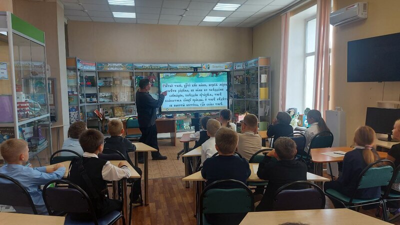 С 15 по 17 сентября в центре краеведения и страноведения проходили совместные мероприятия областной детско-юношеской библиотеки и отдела культуры Мурманской епархии. Во встречах участвовали школьники начальных классов гимназии № 5. Руководитель отдела культуры Мурманской епархии Тимофей Владимирович Пискунов познакомил юных мурманчан с устройством школьного образования в дореволюционной России.