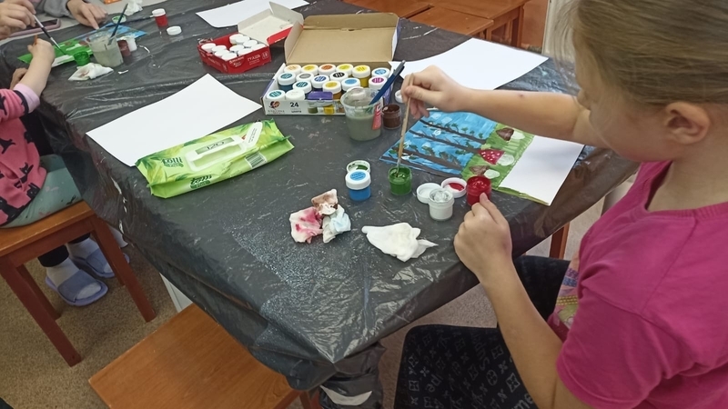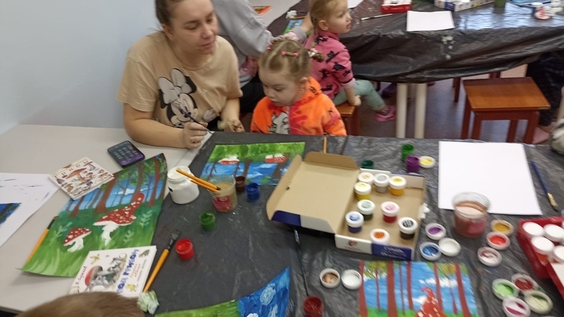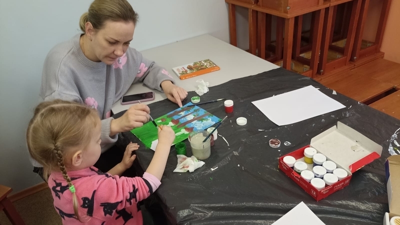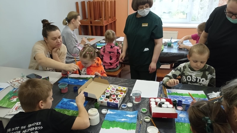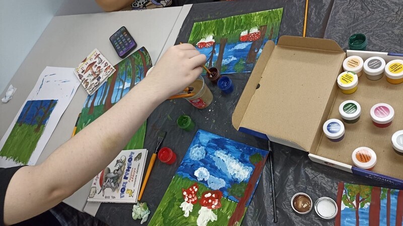 В начале участники встречи познакомились с замечательными книгами об осени из фонда детско-юношеской библиотеки. Затем юные пациенты больницы учились создавать яркие осенние картины. С помощью гуаши и акварельных красок ребята нарисовали лес в осеннем убранстве. Под руководством сотрудника библиотеки дети старательно вырисовывали деревья с осенней листвой и грибы в зарослях травы. В увлекательный процесс с огромным удовольствием включились и родители маленьких пациентов.