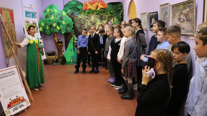 Гости совершили удивительное путешествие по волшебному миру сказок, полное чудес и неожиданных открытий. Вместе со сказочными героями — Инессой Прекрасной и Поляницей — дети познакомились с историей русского фольклора, его разнообразием и видами сказок. Они узнали о великих русских художниках, создававших иллюстрации к народным сказкам.