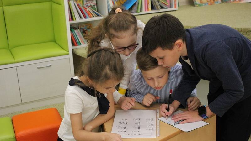 В финале квеста, работая в команде, юные читатели собрали пазл по специальной схеме.