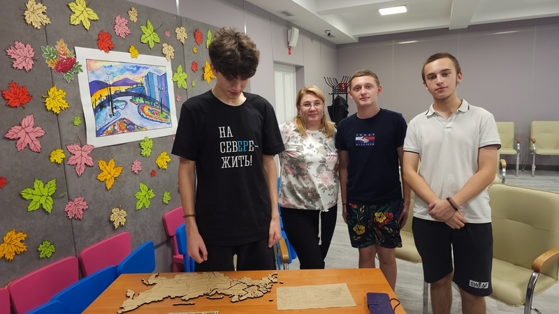 В день памятного события сотрудник Центра добровольческих инициатив «Наше дело» провела для ребят из Мурманского центра социальной помощи семье и детям увлекательные соревнования. Школьникам предстояло собрать спилс-карты РФ с новыми территориями.