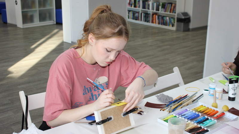 Идея мастер-класса заключалась в том, чтобы преобразить привычный вид книги, превратив ее торцевую часть – обрез – в настоящую картину. Под руководством опытного наставника участники погрузились в увлекательный процесс, где кисточки в умелых руках стали волшебными инструментами, с помощью которых на белых срезах страниц начали рождаться удивительные образы. Процесс требовал не только творческого подхода, но и аккуратности, терпения, ведь любое неверное движение могло повлиять на конечный результат. Однако все справились блестяще.