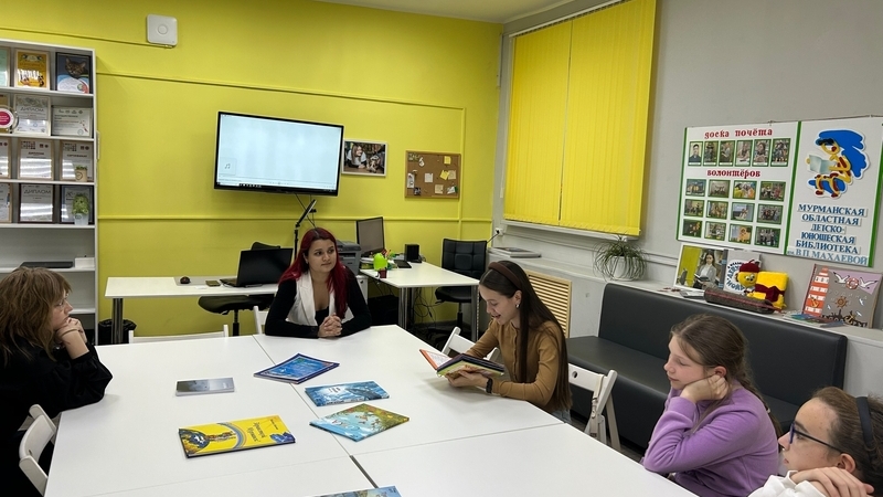 Юным авторам была представлена выставка книг из фондов библиотеки. С удовольствием участники рассматривали произведения мурманских поэтов: Алексея Дежина, Олега Бундура, Николая Блинова, Татьяны Березюк.