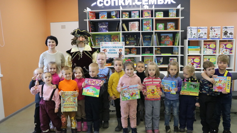 В пространстве СОПКИ.СЕМЬЯ сотрудниками центра чтения «Читай и познавай» был организован шумный и веселый праздник! В гости к девчонкам и мальчишкам пришел злой, ужасный Бармалей. Он утащил все книжки и устроил настоящий книжный переполох. Чтобы вернуть книги на праздничную выставку, дошколятам пришлось соревноваться с Бармалеем в отгадывании загадок по сказкам, а также проявлять свою смекалку и ловкость, участвуя в веселых конкурсах. Помогая Дюймовочке убежать от страшных жаб, ребята прыгали по кувшинкам, вместе с озорником Буратино переносили на носу золотой ключик, а в забавных красных шапочках наперегонки угощали Бармалея румяными пирожками. Ждал ребят и привет от Мойдодыра, и прищепочные пятнашки. Веселились от души!