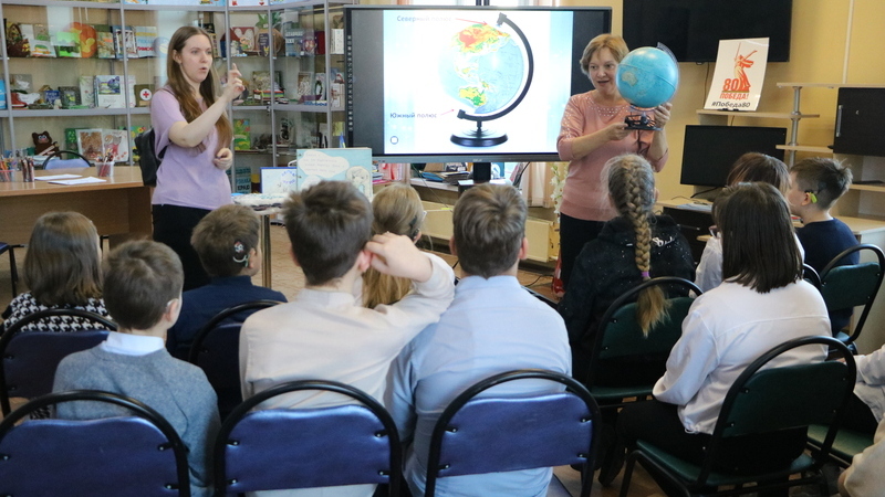 На встрече школьники узнали, где же находится это удивительное место, которое называют Царством холода и льда. Они познакомились с климатическими условиями Северного полюса и необычными природными явлениями, такими как северное сияние, полярная ночь и полярный день.