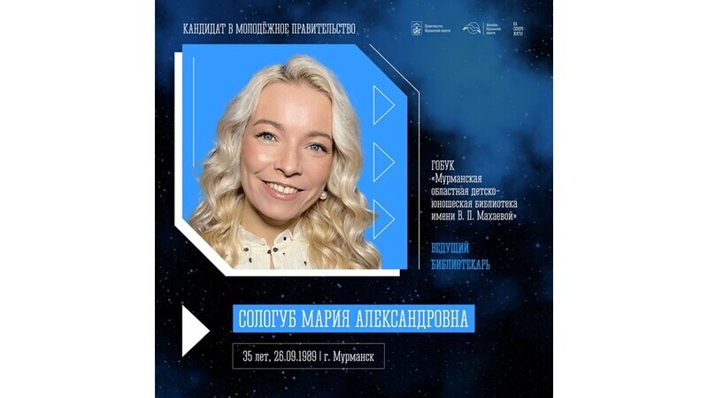 Совсем скоро мы узнаем, кто войдет в новый состав Молодежного правительства. Пожелаем удачи Марии Сологуб – ведущему библиотекарю детско-юношеской библиотеки, редактору и иллюстратору детских книг, представителю фонда детского кино «Сотворение». Энергичной, творческой и спортивной, которая вдохновляет молодое поколение любовью к культуре и искусству.