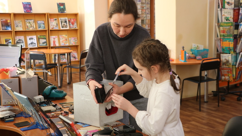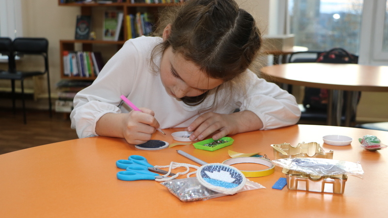 В Музее информации любознательная девочка поучаствовала в познавательной викторине, смастерила оригинальный магнит на память «Красота севера» и даже успела самостоятельно выполнить школьное домашнее задание. А в оставшееся время весело провела время за настольными играми.