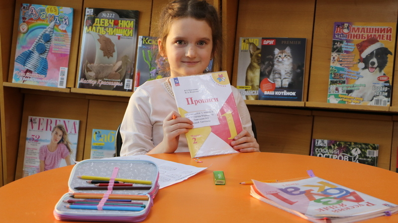 В библиотеке началась библиопродленка! Одной из первых посетительниц стала первоклассница, которая увлекательно провела день в библиотеке.