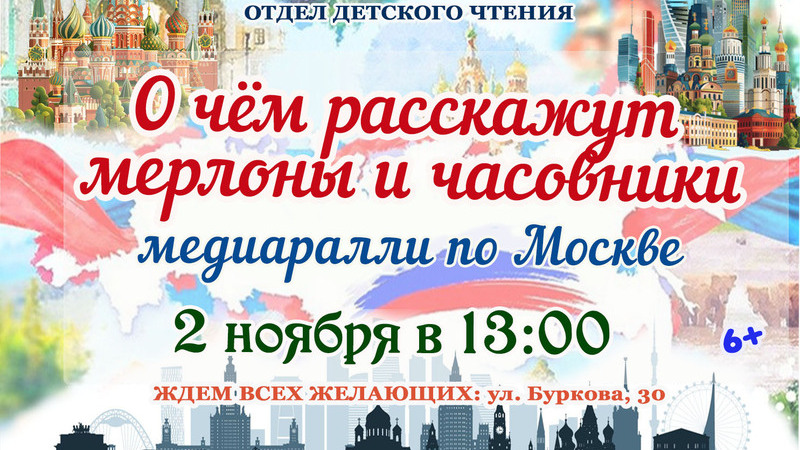 Мальчишки и девчонки, знаете ли вы, что такое мерлоны, а кто такие часовники? Зачем Московскому кремлю соколы? Где находится русская Уолл-стрит? Как появилось Бульварное кольцо, сколько рек в Москве? Ответы на эти вопросы вас ждут в отделе детского чтения 2 ноября в 13:00.