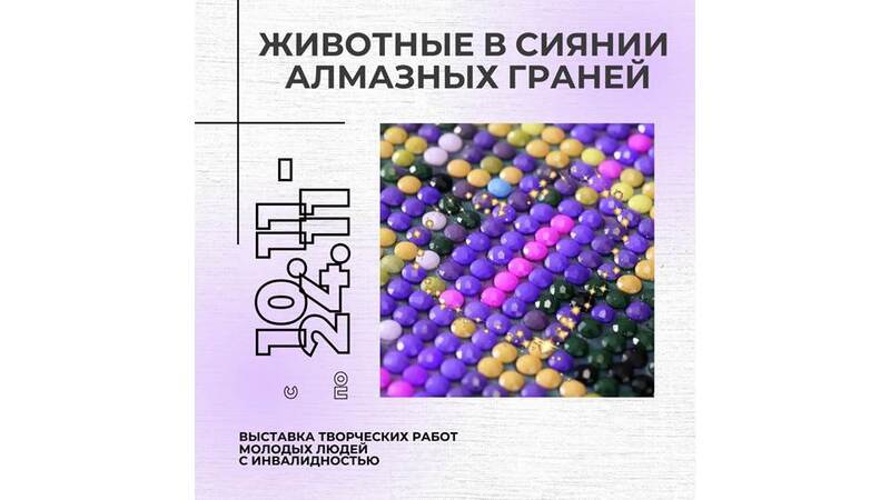 С 10 по 24 ноября в молодёжном центре «БиблиоДвиж» будет проходить выставка творческих работ молодых людей с инвалидностью «Животные в сиянии алмазных граней»