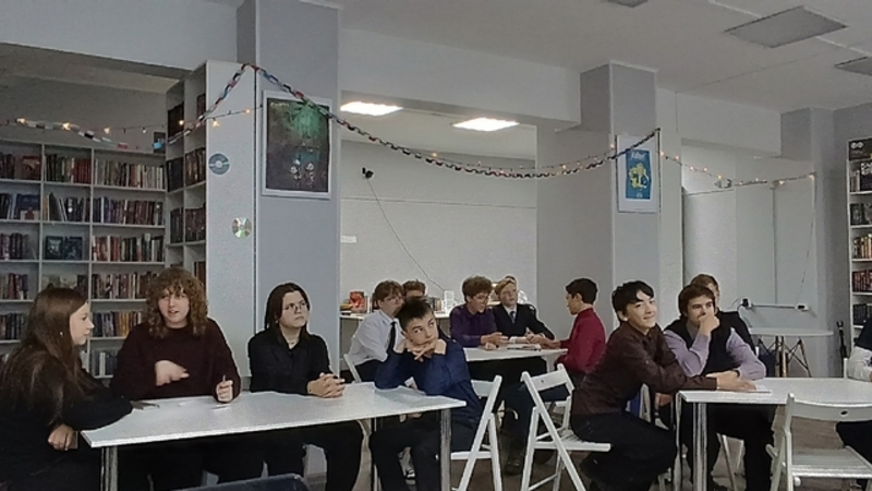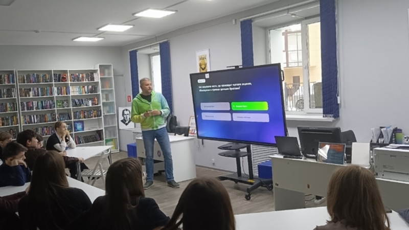 Учащиеся 8 А класса Мурманского академического лицея погрузились в мир финансов: проверили свои знания, освоили новые термины и разобрались в сложных экономических вопросах вместе с экспертом ПАО «Сбербанк» Маратом Махмутовым.