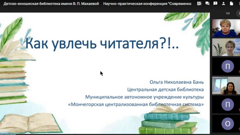 20 ноября в Мурманской областной детско-юношеской библиотеке имени В.П.Махаевой в дистанционном режиме прошла научно-практическая конференция «Современная детская библиотека: пространство возможностей и потенциал развития». Более 350 специалистов по библиотечному обслуживанию детей и юношества из 62 регионов РФ собрались в очном и заочном режиме, чтобы обсудить актуальные вопросы модернизации библиотек, поделиться успешными практиками в области духовно-нравственного и патриотического воспитания детей и подростков и представить актуальные форматы библиотечных проектов и акций по поддержке детского и юношеского чтения.