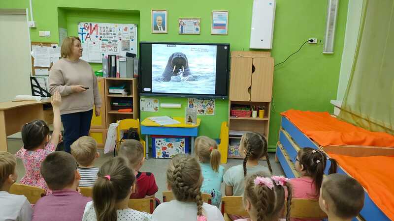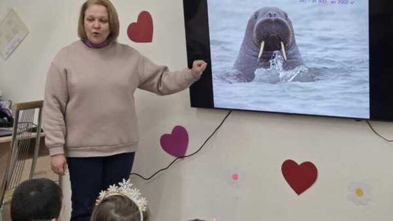 Знаете ли вы, что у моржей тоже есть праздник? Он отмечается 24 ноября и призван привлечь внимание к проблемам сохранения этих величественных северных животных. Воспитанники детского сада № 7 познакомились со средой обитания моржей и их соседей-обитателей. Зачем моржам такие мощные бивни? Как называются усы моржа и какую роль они выполняют? Что помогает этому зверю не замерзать в таких холодных условиях? Об этом и узнали маленькие слушатели на мероприятии. Также ребята потанцевали с моржом Филей, сделали снежную зарядку, отгадали загадки о животных полярных льдин и познакомились с рукописными книгами о северных животных.