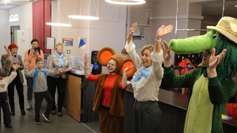 Одной из них стало открытие семейного фестиваля директором библиотеки Натальей Владимировной Феклистовой. Она не только поприветствовала гостей праздника, но и вовлекла юных читателей и их родителей в веселый танцевальный флешмоб. Помогли ей в этом любимые литературные герои детворы – Чебурашка и Крокодил Гена.