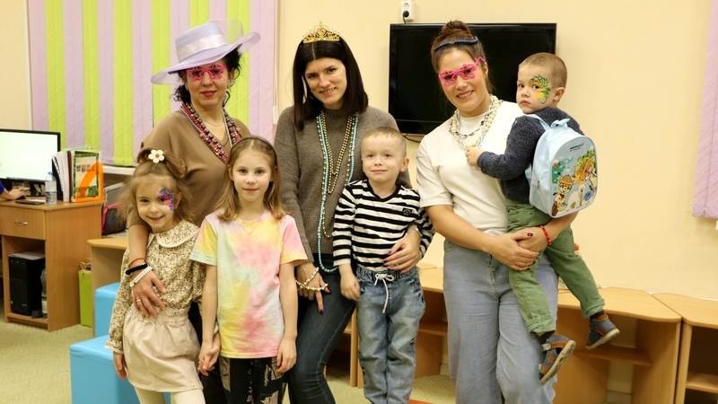 В зале «Счастливое детство» для малышей прошло театрализованное представление. Ребята и их родители отправились в интерактивное путешествие в сказку о материнской любви. Юные читатели выполняли задания коварной Бабы-Яги, помогая Марье-работнице. Дети участвовали в разных сказочных конкурсах и эстафетах: искали сундук с сокровищами, отправляли предметы обратно в книжки, собирали яркие мухоморы и варили обед и задорно танцевали. А после вместе с родителями исполнили мечту Бабы–Яги и построили для неё летучий корабль. Ребята также мастерили открытки с нежными и яркими цветами, которые растрогали и вызвали улыбку у любимых мамочек.