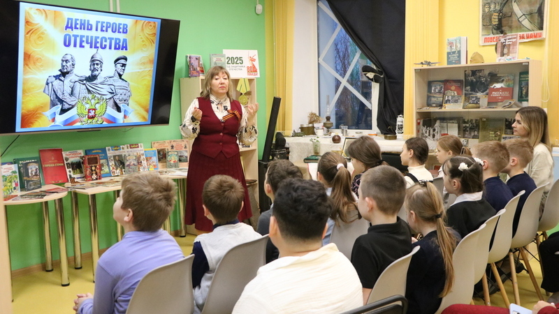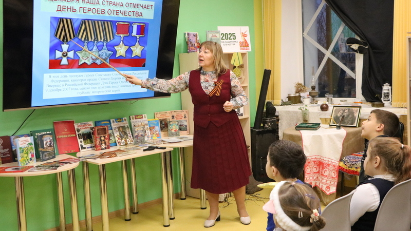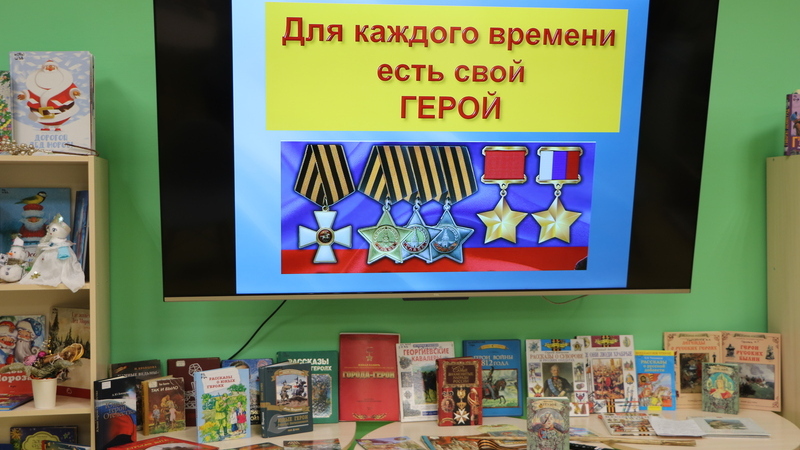 На встречах в библиотеке юные читатели узнали историю праздника, кто такие герои, за какие заслуги награждают медалями и орденами, а также о георгиевских наградах. Детям рассказали о подвигах Суворова и о его «Науке побеждать», о том, когда появился орден «Золотая Звезда» Героя и кто им награждается. Поговорили о качествах, которыми обладают настоящие герои, чем они занимаются в обычной жизни. С большим вниманием ребята слушали о детях – героях не только минувших дней, но и живущих среди нас. Каждый год в Совете Федерации проходит награждение героев главным орденом страны, в том числе знаком высшего отличия. Среди них встречаются и маленькие герои, проявившие свое мужество и храбрость.