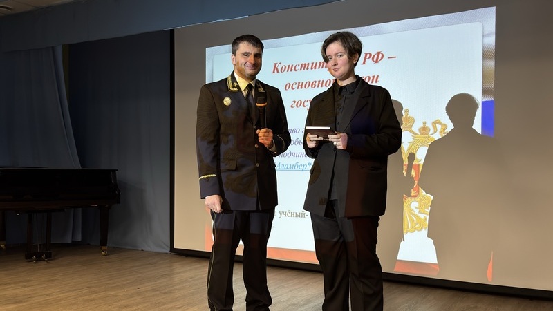 В качестве награды за победу в викторине и активное участие в дискуссии с судьей ученица 10 «А» Гимназии № 3 Соболева Алёна получила подарочное издание Конституции РФ.
