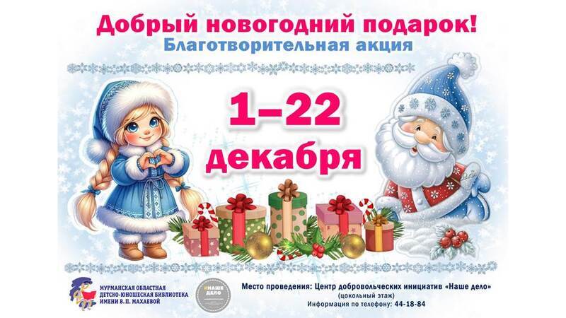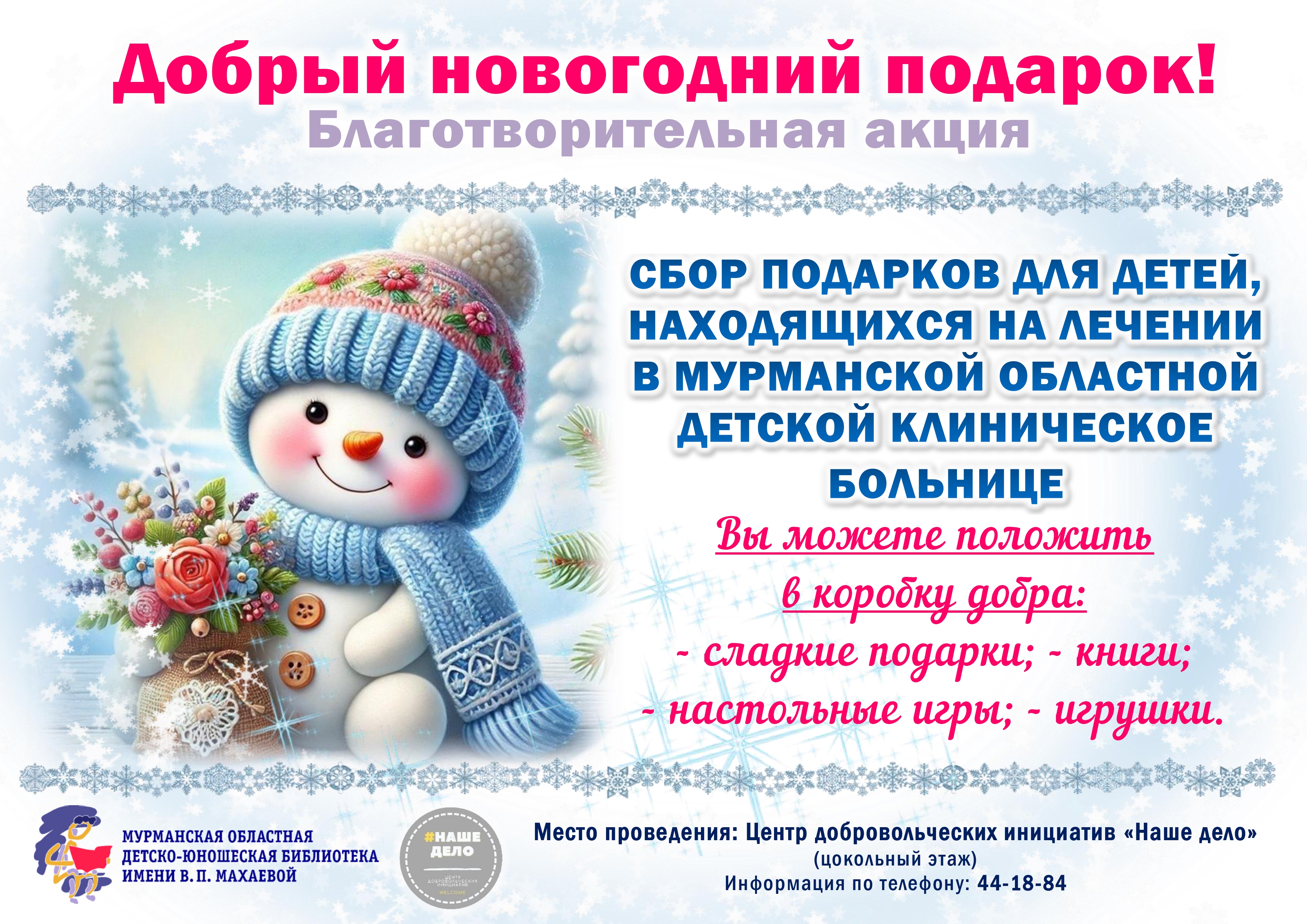 Волонтерский центр библиотеки готов поддержать детей, проходящих лечение в областной детской клинической больнице, и запускает акцию «Добрый новогодний подарок».