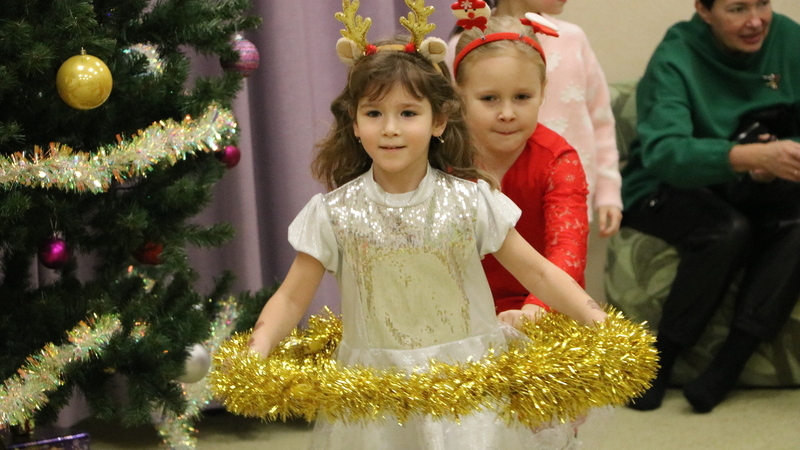 Дети азартно соревновались в тематических конкурсах и эстафетах, наперебой отгадывали загадки в стихах, дружно пели новогодние песни и зажигательно танцевали. Особый восторг вызвала игра на ловкость «Греби снежки», а в конкурсе «Снежные бублики» каждый смог продемонстрировать свою меткость.
