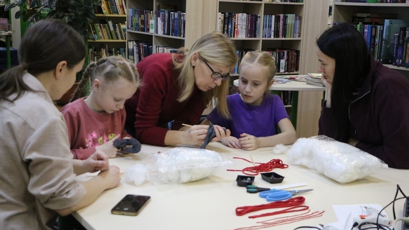 Под чутким руководством библиотекаря дети и взрослые мастерили из ткани, синтепона и яркой пряжи лошадку-подвеску, будущую хозяйку наступающего года. Процесс от заплетания гривы до украшения готовой фигурки праздничным декором и лентами увлёк всех без исключения. Каждая лошадка получилась уникальной, отражающей характер и настроение своего создателя.