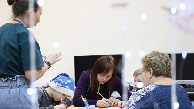Наши гости не просто рисовали — они погрузились в историю русской игрушки, а затем создали свои уникальные украшения для новогодней ёлки.