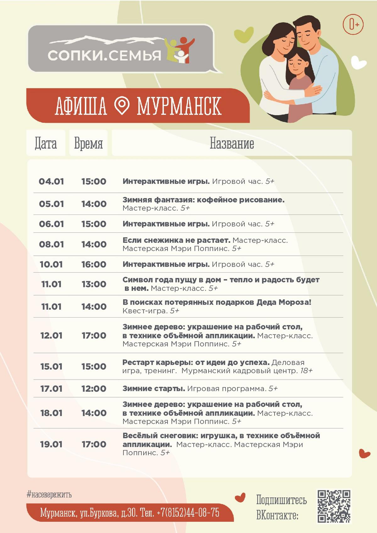 Пусть первый месяц 2026 года станет временем тёплого общения, новых знаний и совместного творчества! Пространство СОПКИ.СЕМЬЯ подготовило январскую программу для всей семьи.