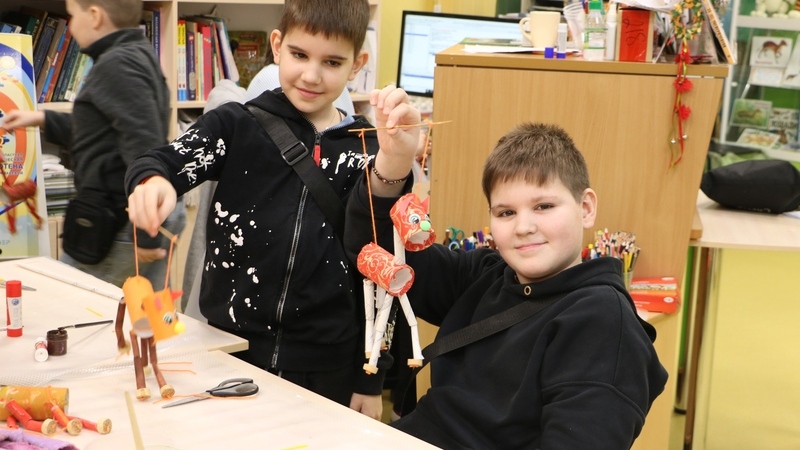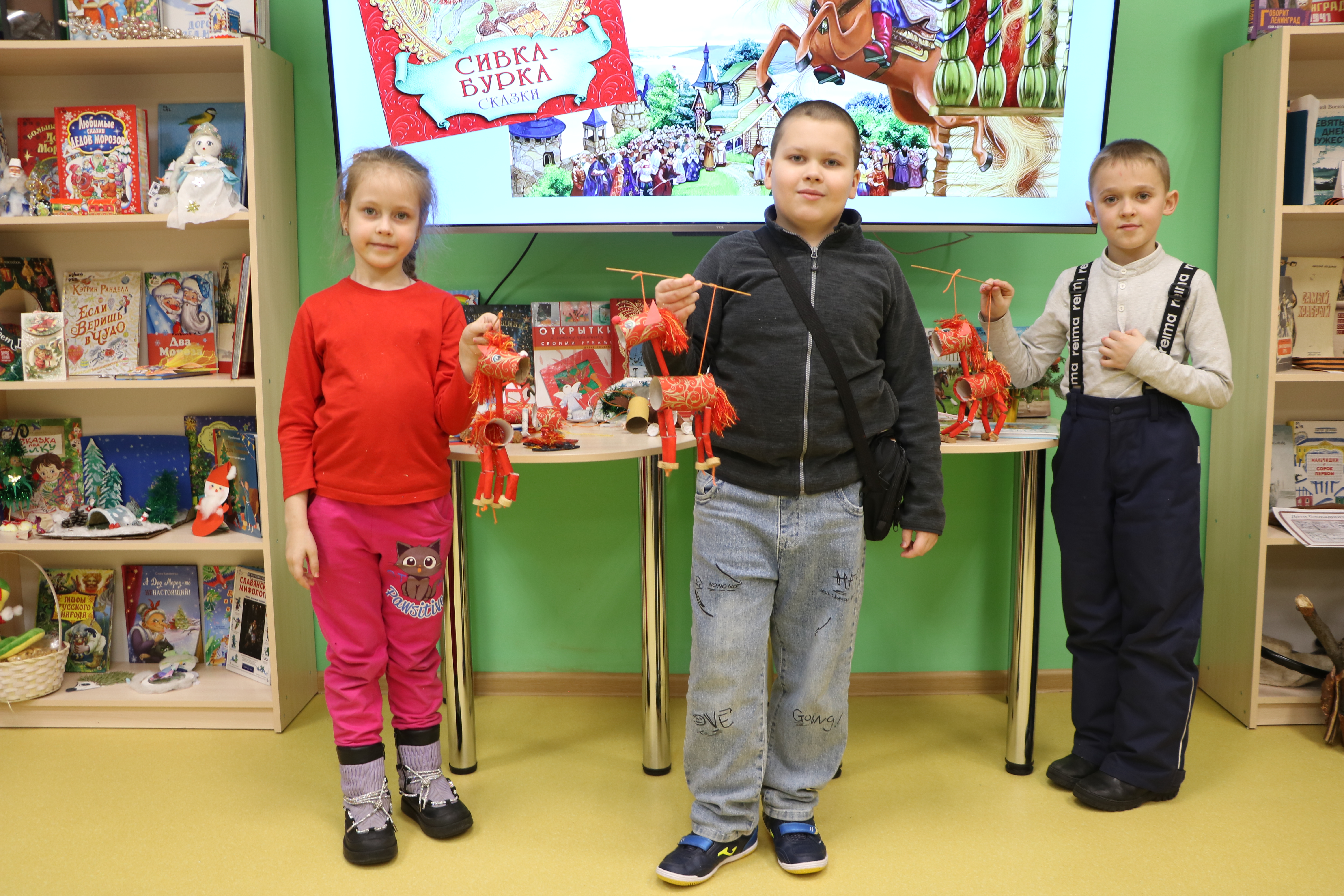 В воскресенье ребята узнали много интересного о символе наступившего года. Сравнивали сказки «Сивка-бурка» и «Конек-горбунок», пытались определить масть волшебной красавицы, что вытаптывала поля в этих сказках. Узнали, что в Америке живет лошадка небывалой красоты, которую зовут Огнегривка. Провели расследование, мог ли сильнейший снегопад в Москве быть вызван шалостью героев книги «Приключения домовят» Д.Емеца, которые отправились в эти праздничные дни кататься на санях Снегурочки, запряженных тройкой белоснежных коней. Выяснили, что рыжая лошадь может быть очень разной, но всегда стремительной, умной и трудолюбивой, и поспешили из подручных материалов сделать лошадку-марионетку по кличке Огнегривка. В работе использовали картонные втулки, бумажные салфетки, нитки и много терпения. Уверены, наши маленькие мастера в этот год будут точно «на коне».