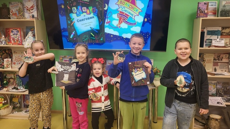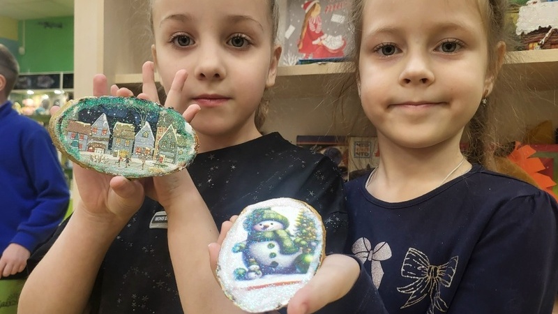 В субботу участники с удовольствием слушали зимние сказки С.Топелиуса, Т.Беринг, Е.Каретниковой, рассказывали о своих добрых делах, а затем под руководством сотрудника отдела создавали «зимнюю сказку». Каждый сам выбирал бумажную салфетку с рисунком и с помощью клея переносил его на деревянный спил в технике декупажа. Украсили свои работы золотой краской и блестками. У ребят получились чудесные картины с зимним пейзажем.