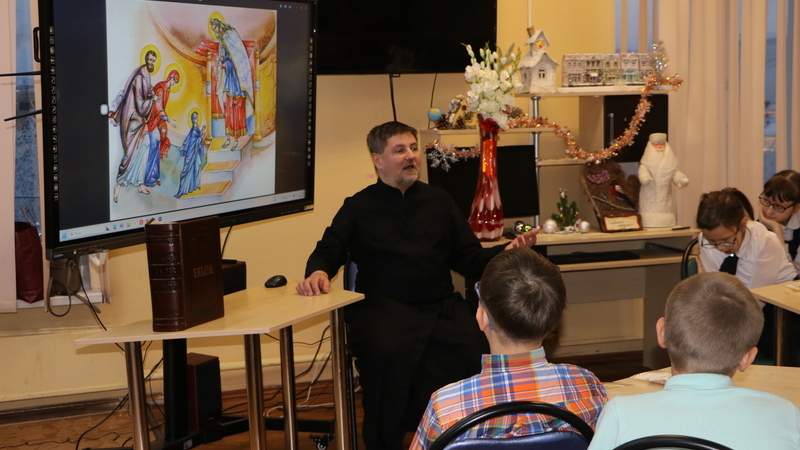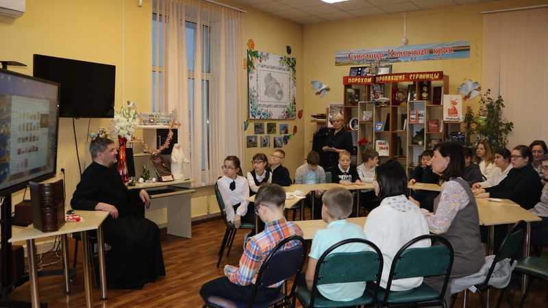 Руководитель отдела культуры Мурманской епархии Тимофей Владимирович Пискунов на встрече рассказал ребятам из Мурманской коррекционной школы-интерната №3 об истории и духовном смысле Рождества, о традициях и легендах, связанных с праздником. Дети узнали, почему время после Рождества называется Святками и считается особенным, полным радости и чудес, а ночь перед Рождеством — таинственной.